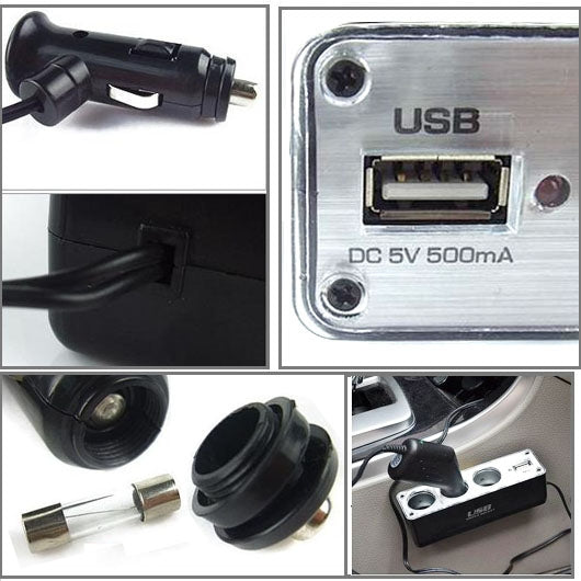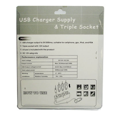 3 Triple Socket 12V/24V Car Cigarette Lighter USB Power