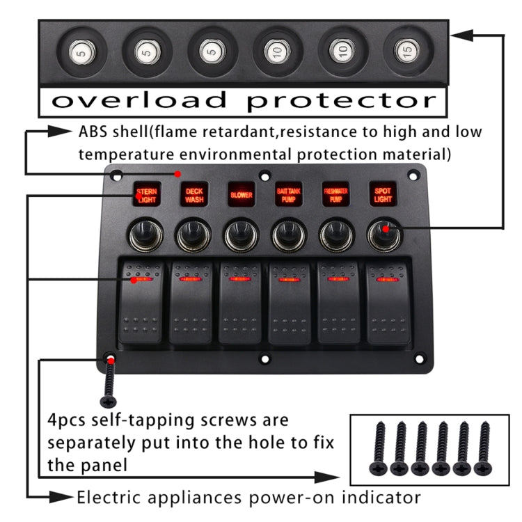 3Pin 6 Way Switches Combination Switch Panel with Light and Projector Lens for Car RV Marine Boat