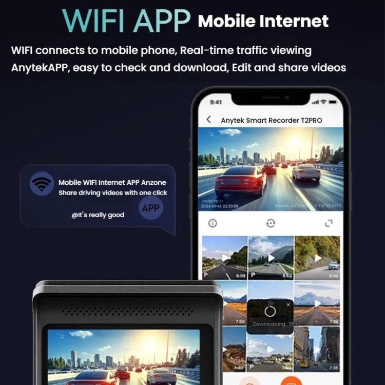 Anytek T2 PRO 3.0 Inch 2K HD Night Vision Recorder Hidden Car Camera Front And Rear Dual Recording
