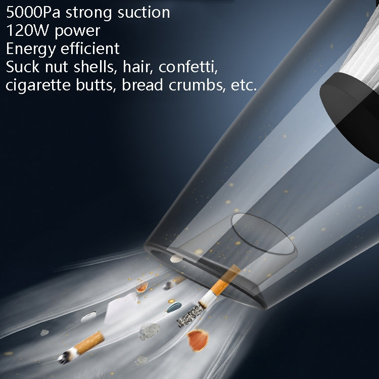 5. 5000Pa strong suction power, 120W power, high efficiency and energy saving, sucking fruit shell, hair, confetti, cigarette butts, bread crumbs, etc.