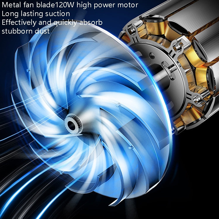 3. Metal fan blades, 120W high-power motor, long-lasting suction, effectively and quickly sucking stubborn dust