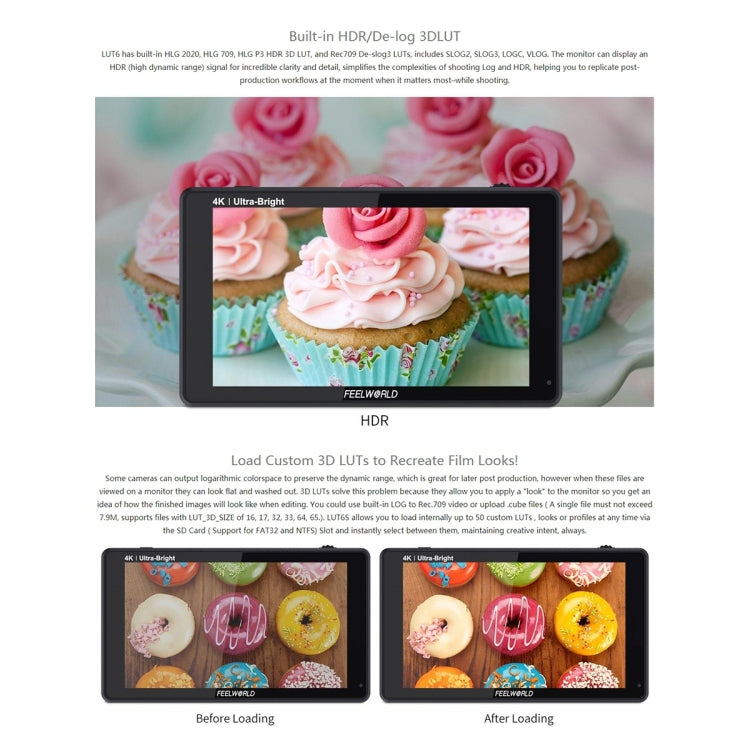 FEELWORLD LUT6 1920x1080 2600 nits 6 inch IPS Screen HDMI 4K Touch Control Camera Field Monitor