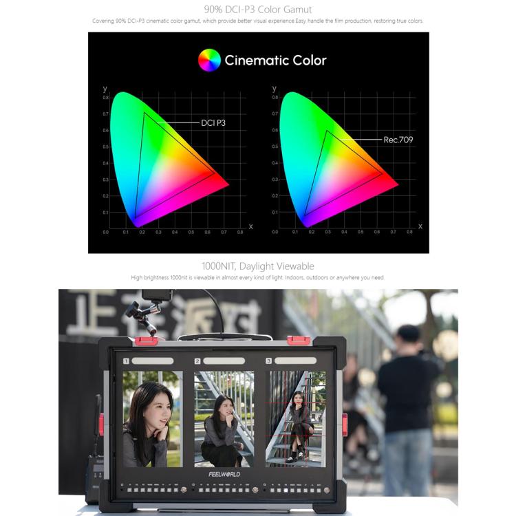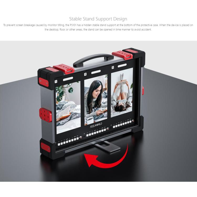 FEELWORLD PS101 Triple 10.1-inch Vertical Dispaly Carry-on Monitor High Brightness 1000nit Portable Protective Case