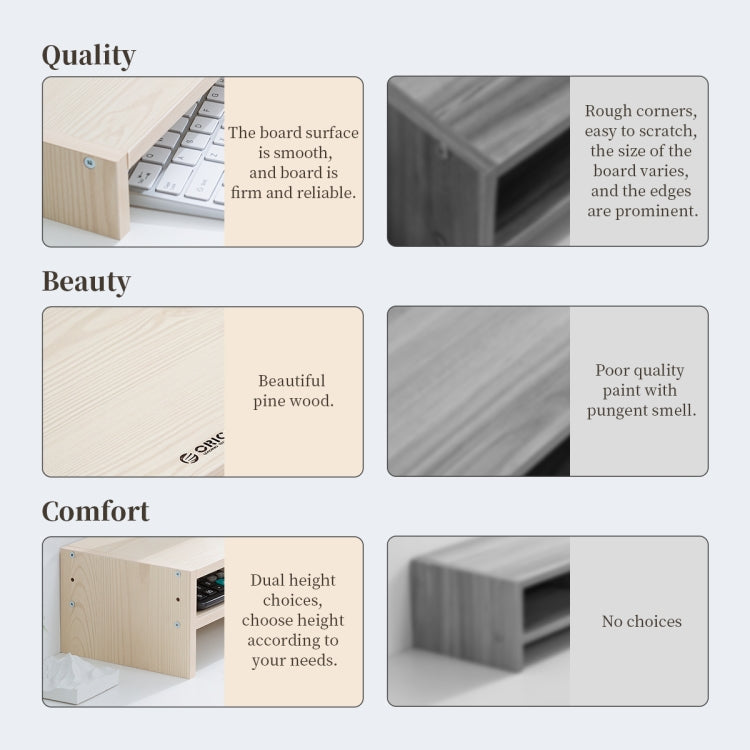 ORICO MSR-04-WD-BP 2-layer Wood Grain Computer Monitor Holder with Partition, Size: 50 x 20 x 13.5cm
