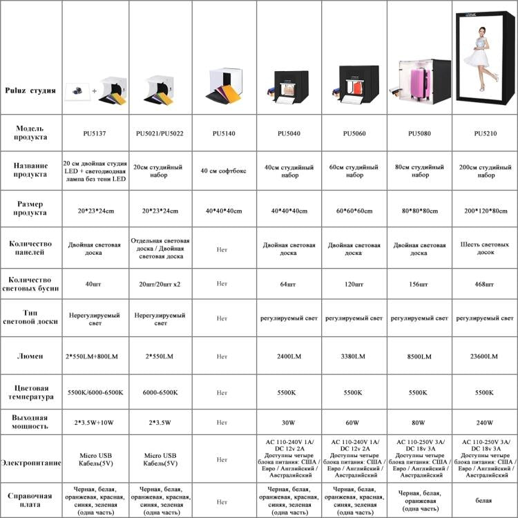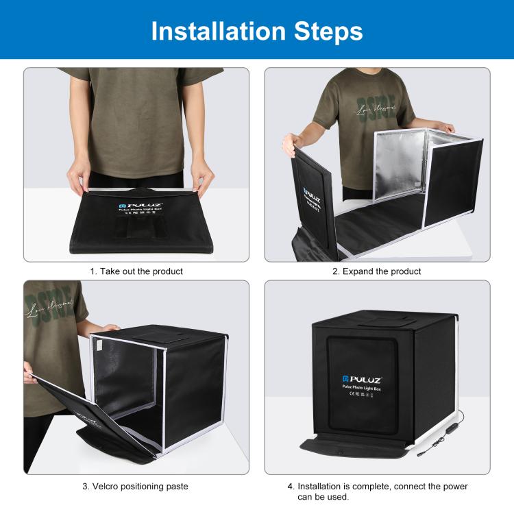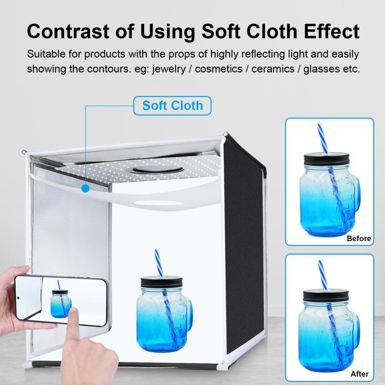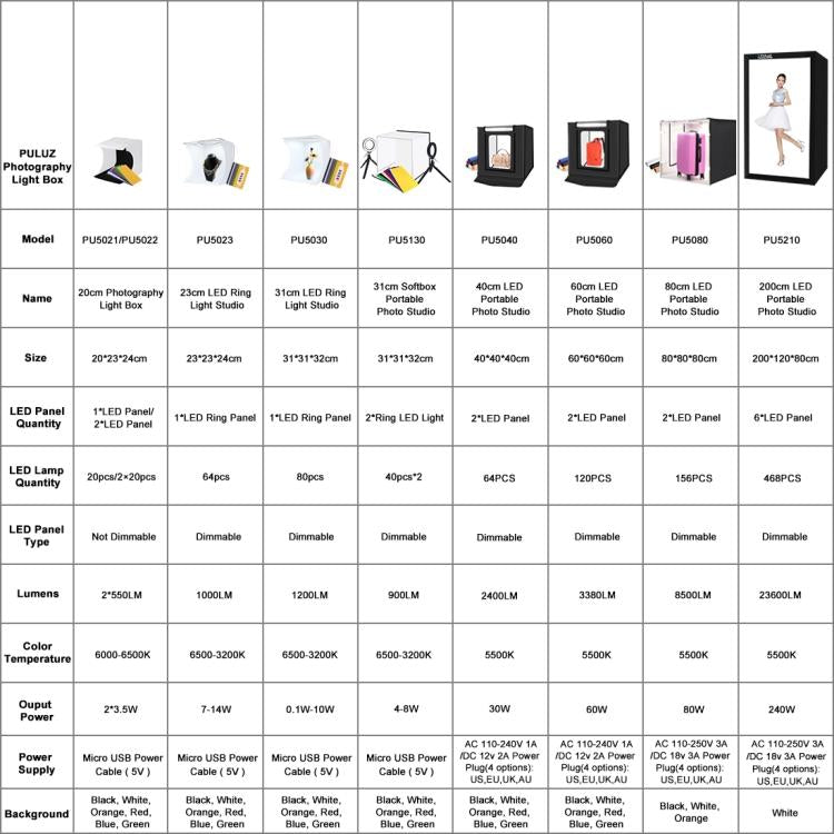 PULUZ 40cm Folding Portable White Light Dimmable Photo Lighting Studio Shooting Tent Box Kit with 6 Colors (Black, Orange, White, Red, Green, Blue) Backdrops