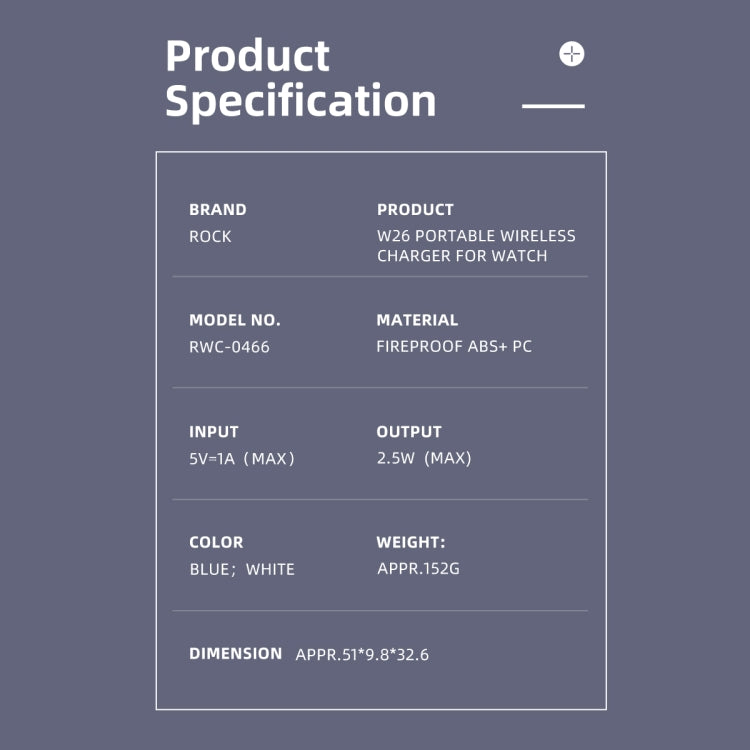 ROCK W26 Portable Magnetic Wireless Charger for Apple Watch