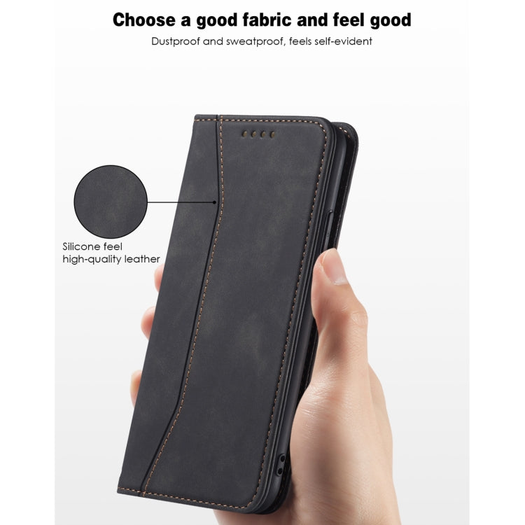 Skin-feel Calfskin Texture Magnetic Dual-Fold Horizontal Flip Leather Case with Holder & Card Slots & Wallet