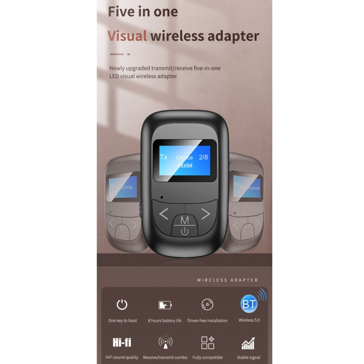 T-14 Bluetooth 5.0 2 In 1 LCD Digital Display Bluetooth Adapter Receiver Transmitter
