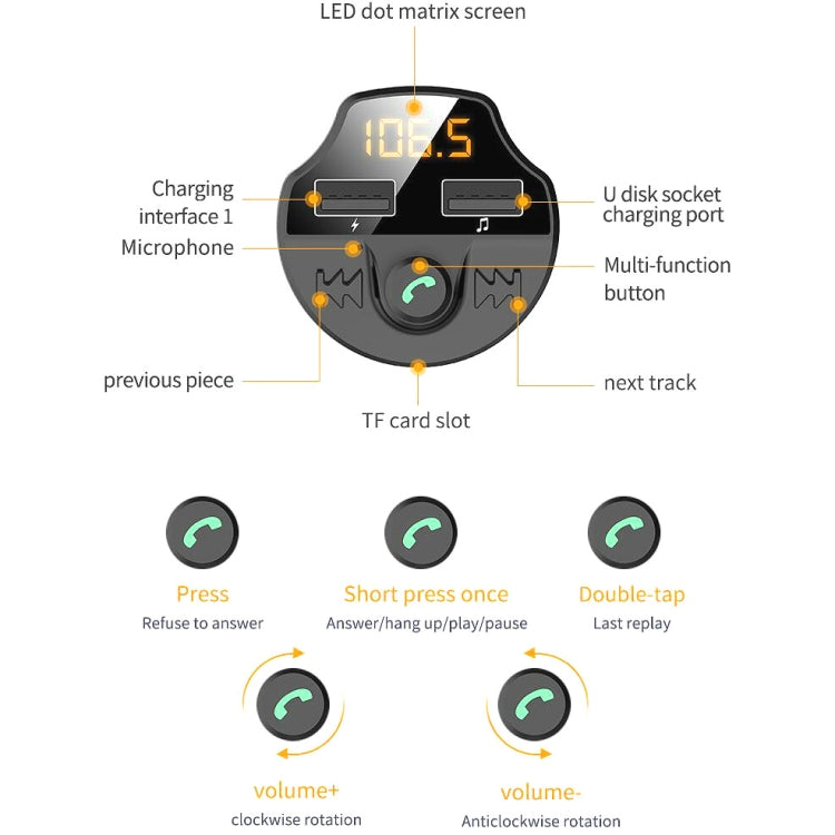 T66 Car Bluetooth Car Charger Cigarette Lighter MP3 Player Hands-Free Car FM Transmitter