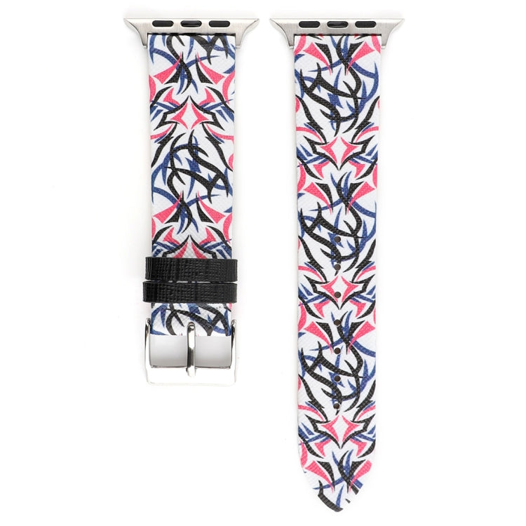 Thorns Printing Genuine Leather Watch Band for Apple Watch Ultra 49mm&Watch Ultra 2 49mm / Series 10 46mm / 9&8&7 45mm / SE 3&SE 2&6&SE&5&4 44mm / 3&2&1 42mm